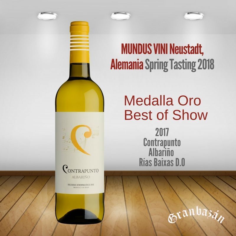El pasado 25 de Febrero, nuestro Contrapunto Albariño 2017 de Bodegas GRANBAZÁN fue premiado con la Medalla de Oro y Best of Show por el jurado deMundus Vini Spring Tasting 2018.